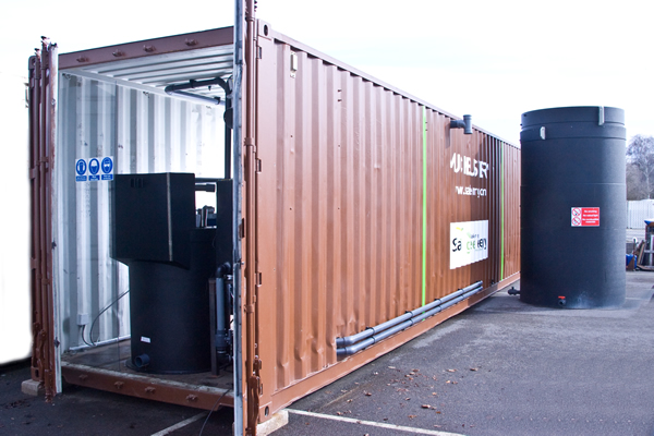 “The Muckbuster® is a self-contained anaerobic digester, built inside a repurposed shipping container. It can produce renewable energy from any organic materials—animal waste, grass clippings, or the stuff bound for the septic tank. In a month-long process, bacteria break down the organic materials and produce methane, a gas that can then be burned to produce electricity…allowing you to squeeze two kilowatt hours of power—about half of what a typical American home consumes—from 100 gallons of organic waste.”